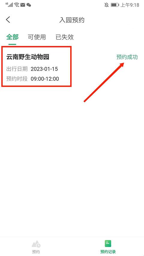 5、在“预约记录”界面,可以看到预约的景区和时间,显示“预约成功”。