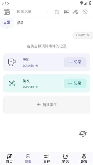 4、日常记录的各种事件都可以查看,随时可以新建事件内容。
