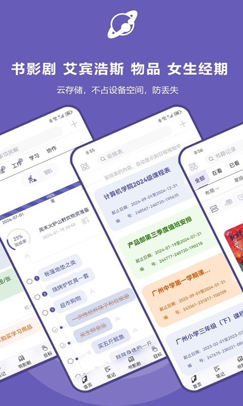 2、您的日程记录、笔记内容直接保存到阿里云服务器中,不占用您设备存储空间,同时您可以多台手机或其他设备访问使用,不用担心更换手机设备的问题。数据更安全,使用更方便。
