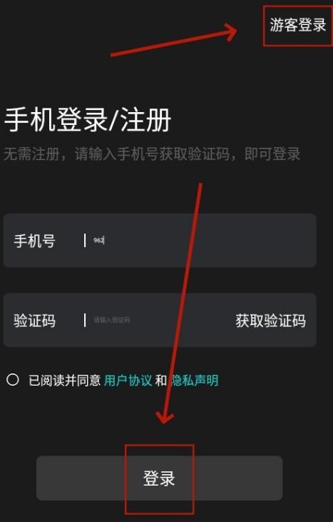 2、进入之后登录你的账号,不想登录的话就点击上方的游客登录。