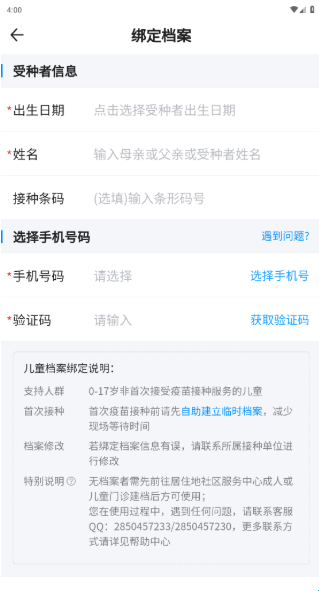 1、绑定档案:在线完善受种者的详细信息对疫苗接种档案进行绑定;