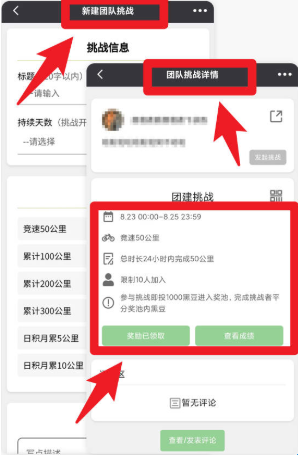 4、创建团队挑战时可设置目标距离、持续天数及参与人数上限,参与者完成后可领取奖励并查看成绩。