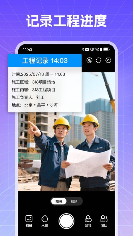 拍照时自动添加包含真实拍摄时间、地理位置等信息的水印,确保每一张照片都可追溯、可验证,为工作记录、项目管理提供有力支持。