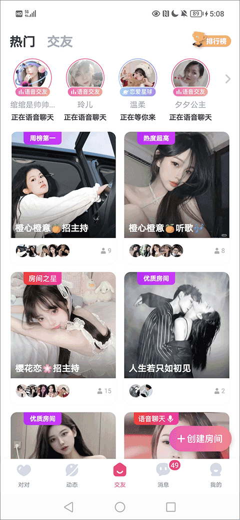4、【多人聊天室互动】有萌妹、有校花、也有网红,在线语音聊天,以歌会友,天南地北的朋友,在语音与视频房间内实时互动。