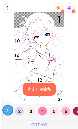 4、在涂色页面,可选择下方颜色数字,根据提示进行涂色操作。