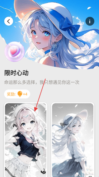 3、在限时心动详情页,选择喜欢的角色形象,进入涂色页面。