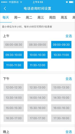 4、点击“通话时间段设置”,可设置方便接听电话的通话时间,这样患者仅能在设置的空闲时间咨询健康问题。