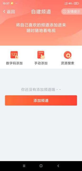 4、在“自建频道”页面,点击“添加频道”按钮