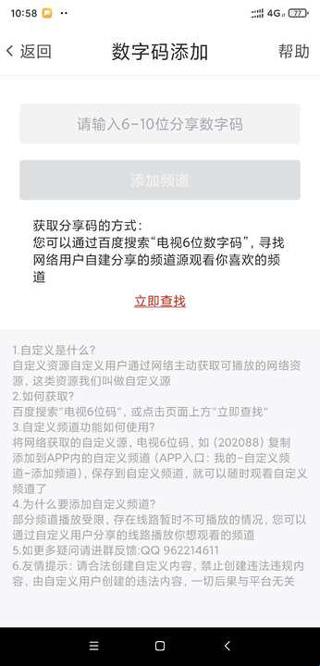 5、在“数字添加”页面,输入数字码后,点击“添加频道”按钮