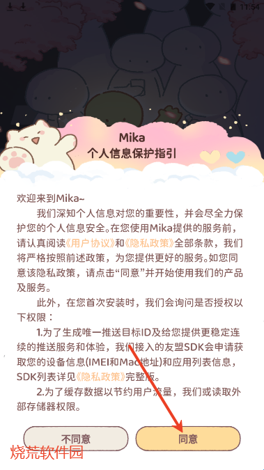 1、打开mikaAPP点击同意