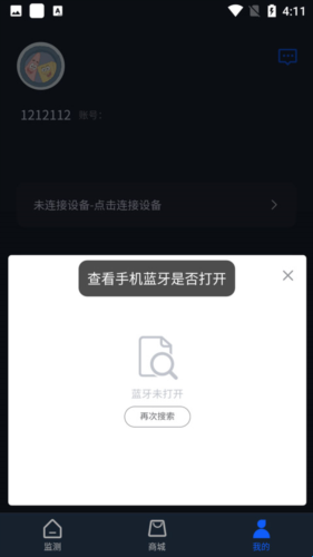 2、打开软件,会弹出设备连接提示,打开手机蓝牙并连接。然后在弹出的设备连接提示中绑定手环,这样以后就会自动连接了。