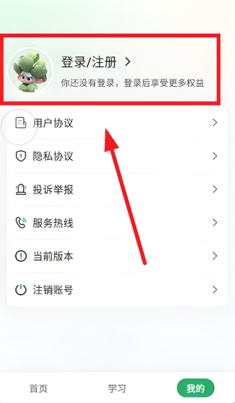 3、在我的界面点击登录/注册。