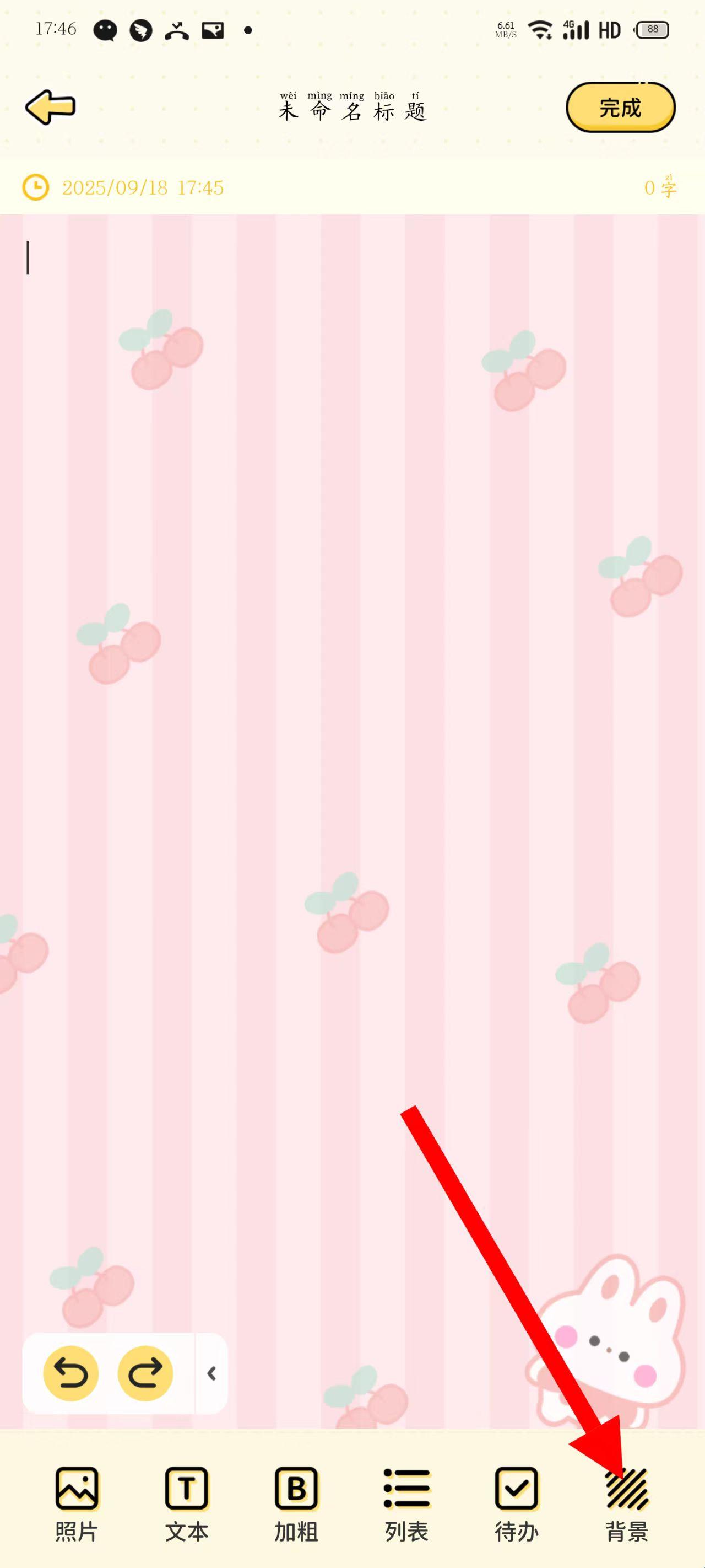 2、在编辑页面,点击底部背景选项,选择喜欢的背景样式。