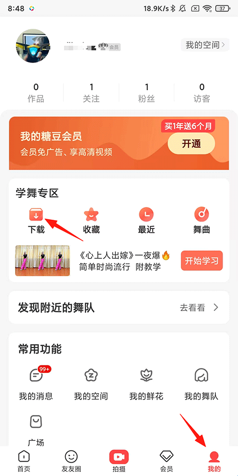 4、下载完成的舞曲可以在【我的】-【学舞专区】-【下载】中查看;