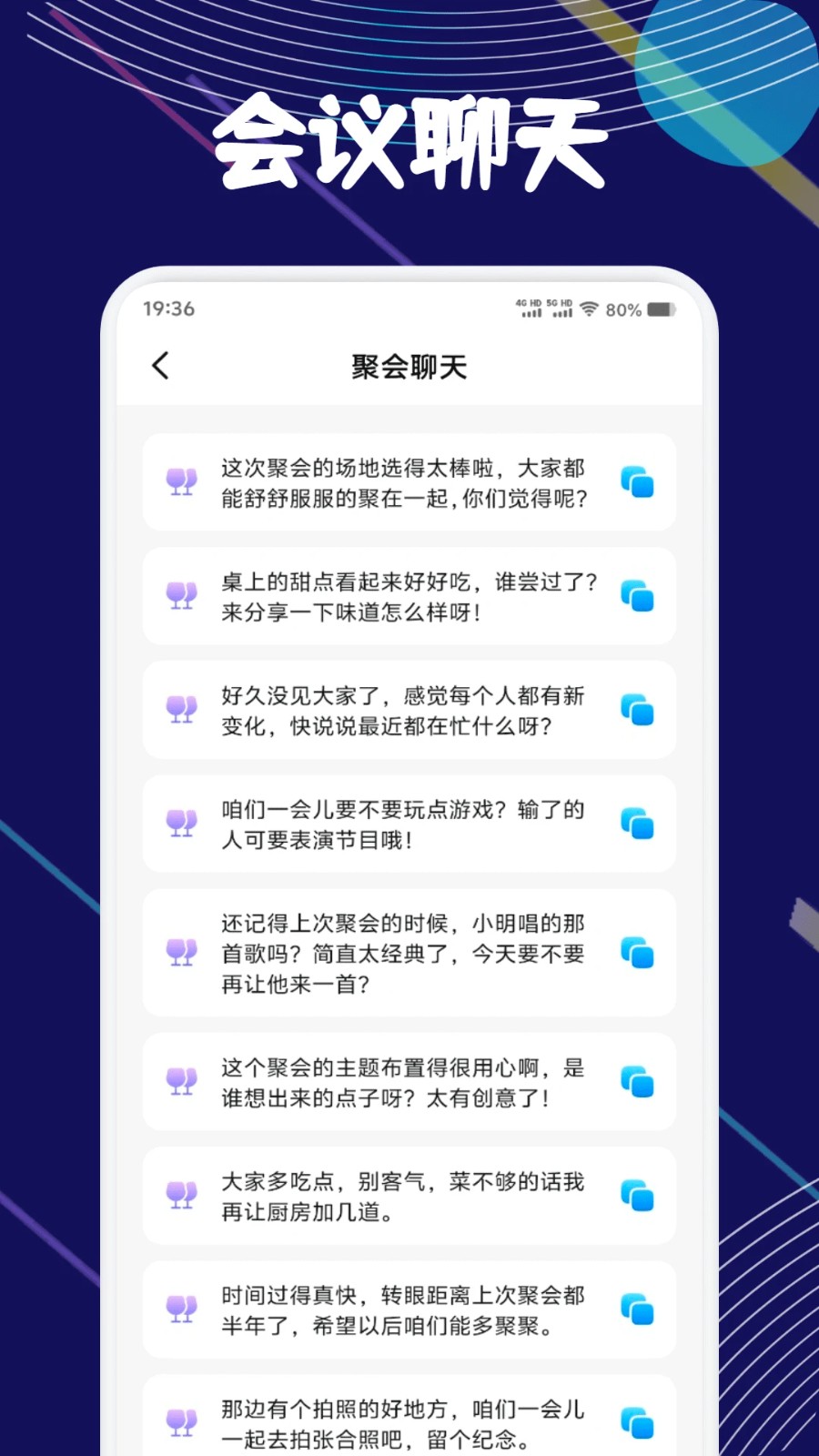 3、通过话术库为商务社交提供支持,实现办公效率提升与沟通能力优化的双重价值。