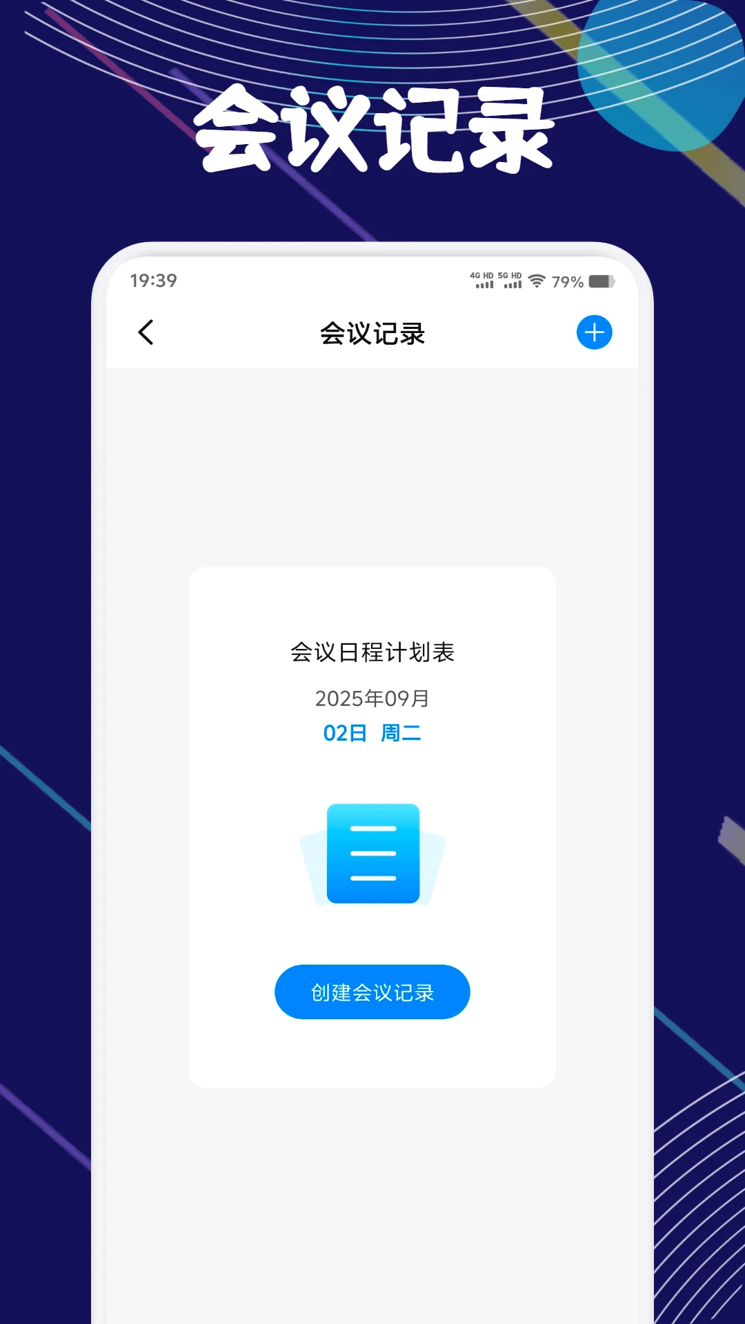 3、会议记录:强大的会议记录功能,添加保存会议信息,以便随时都能在应用中查看详情。