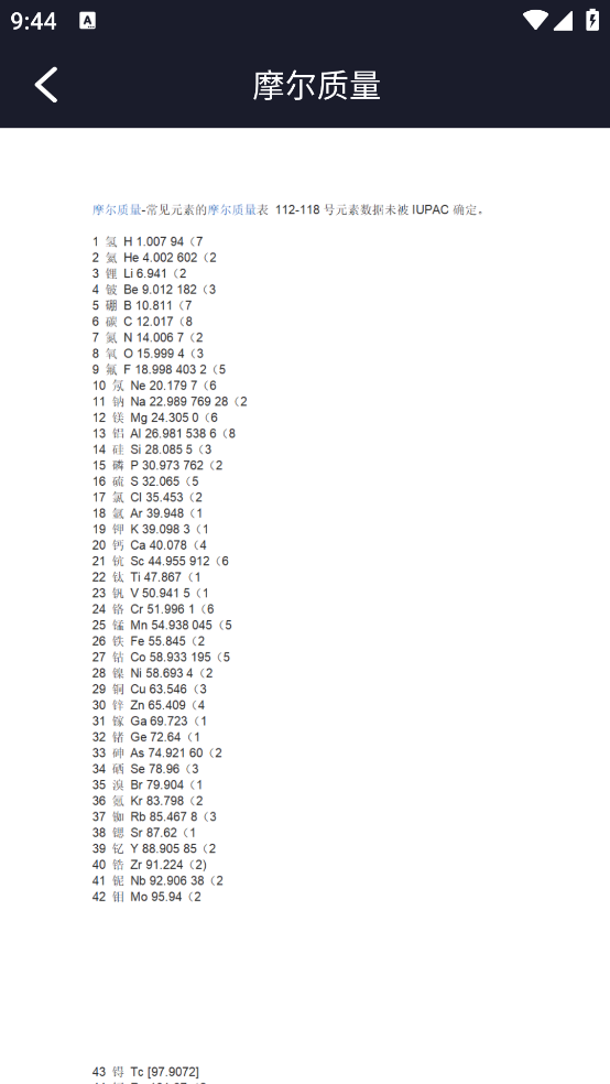 4、元素周期表:展示了关于化学的元素周期表,可以对各类元素周期符号进行查看,轻松掌握原子质量。