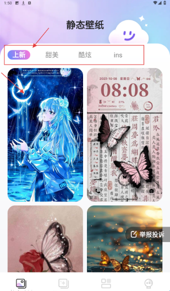 1、进入【静态壁纸】界面,选【上新】标签,浏览并挑心仪壁纸(如动漫风格)。