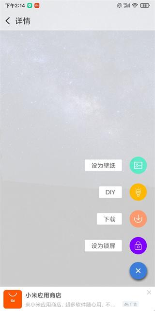 4、点击一个壁纸进入,再点击右下角加号,可以设为锁屏或者壁纸,也可以直接下载。