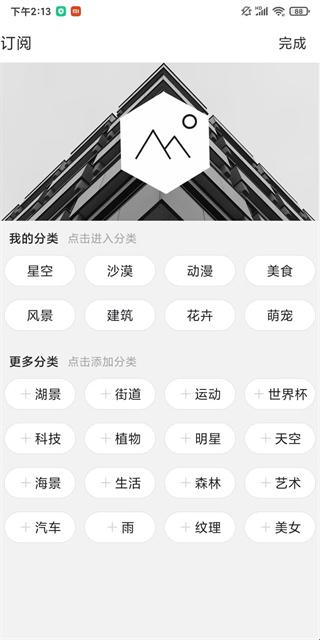 2、首次进入可以选择自己感兴趣的壁纸分类,这里有多种类型供你挑选。