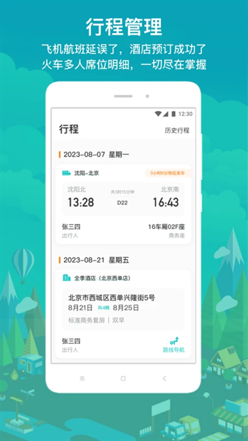 4、行程变更:发生行程变更?不要紧,通过应用同样可以完成机票和酒店的退订、改签,满足用户各种需要。
