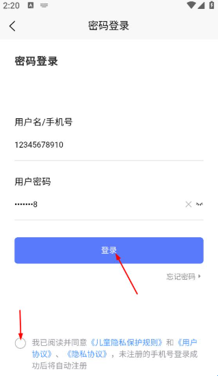 4、勾选“我已阅读并同意儿童隐私保护规则和用户协议,隐私协议,点击“登录”按钮,完成登录操作。