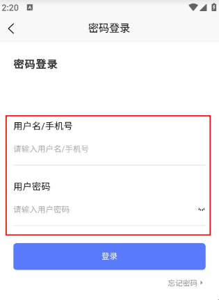 3、在密码登录界面,输入用户名/手机号和用户密码。