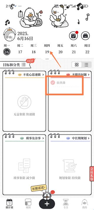 2、在这里面可以进行打卡任务,能够让你轻松地指定一个打卡计划。