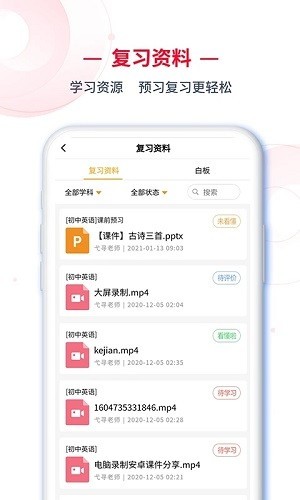 2、资料学习:课前导学、教学课件、课后资料,老师一键分享,课下反复学习。