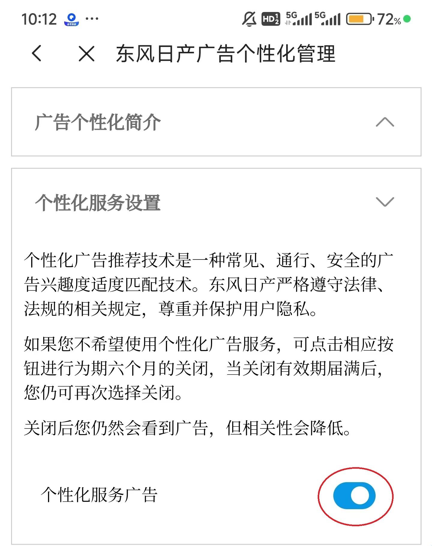 4、点击屏幕右侧的按钮,将其关闭。
