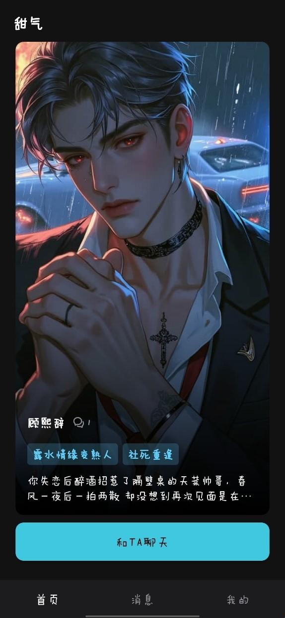 甜气是一款专注于高品质角色互动体验的软件致力于为用户提供深度沉浸式的对话服务。用户可在应用中体验多种角色互动模式,涵盖现代、古风、科幻等题材场景,满足不同情境下的对话需求。每个角色配有专属视觉形象设计,通过高质量插画呈现人物特点,提升整体沉浸式交互体验。甜气让你每次打开都像掉进一个梦幻世界,角色颜值在线,性格还都超有辨识度,快来下载体验吧。