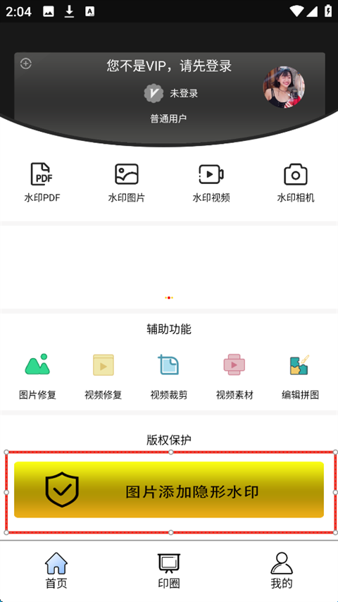 1、打开水印王App,点击图片红框所示。