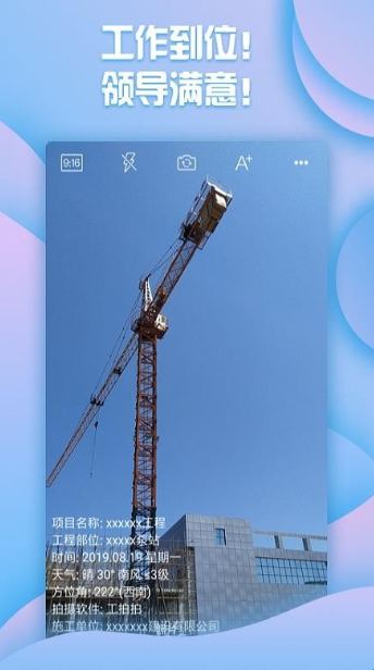 工拍拍工程相机软件是一款主打工程为主的相机拍摄功能的软件。全新、完善、便捷的工程照片水印编辑添加拍摄、工程项目图片库管理体验,还可以根据需求来添加文字完成相关内容的提供与提交。带给您工程项目管理的新变革,是您在工地现场搞施工,做监理,当业主的好帮手!