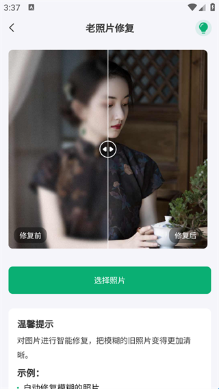 2、修复过程中,保留原始照片的风格和特色,确保修复后的照片看起来自然、真实,让用户感受到时光的温暖;