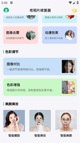 1、采用先进的智能修复技术,能够智能识别照片中的各种损伤,并自动进行修复,极大地简化了修复流程;