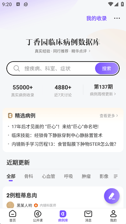 3、此外,用户还可以在病例库搜索在平常工作中遇到的疑难杂症,同时也能扩展知识面。