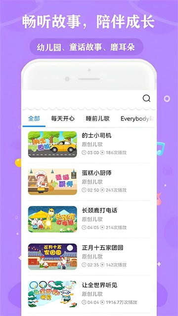 1、打开快听免费音乐大全App,在首页可以收听各种各样的儿歌视频。
