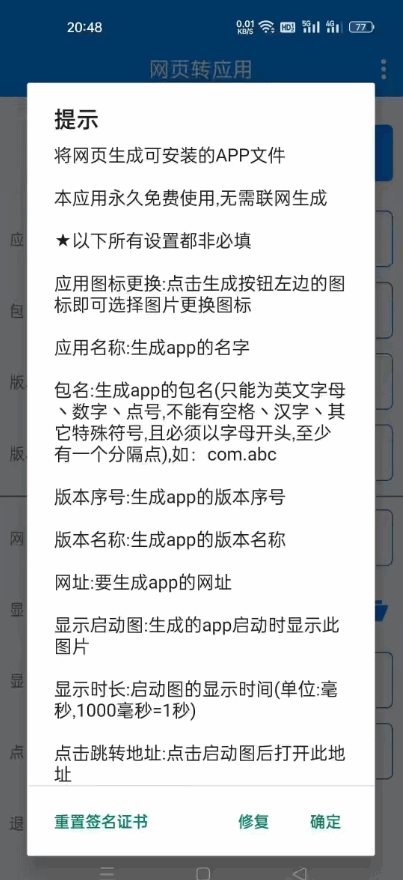 本应用可将网页生成可安装的APP文件,无论是新闻、博客、论坛,还是在线购物网站或者社交媒体平台,只要你有个希望转换的网址,应用就能为你实现。应用永久免费使用,无需联网生成。