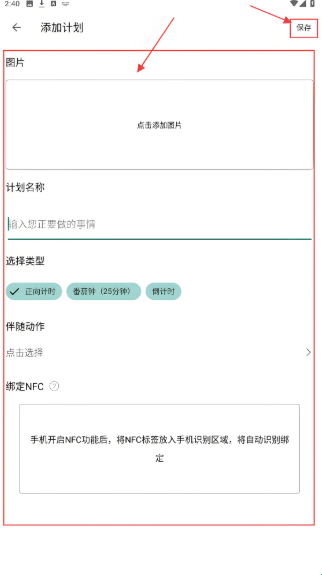 3、填【计划名称】选【类型】等,点【保存】,完成计划创建。