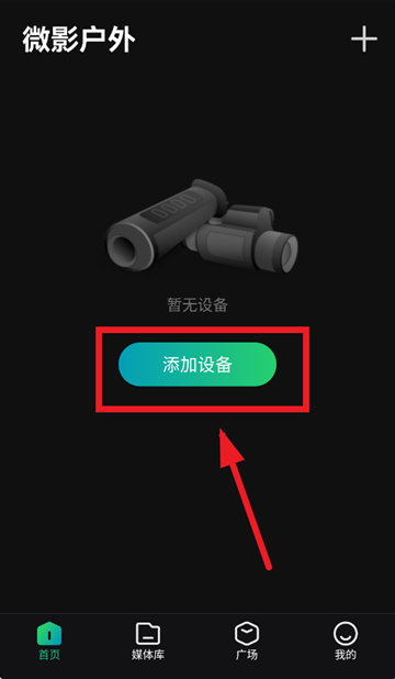1、打开微影户外app,进入后点击添加设备。