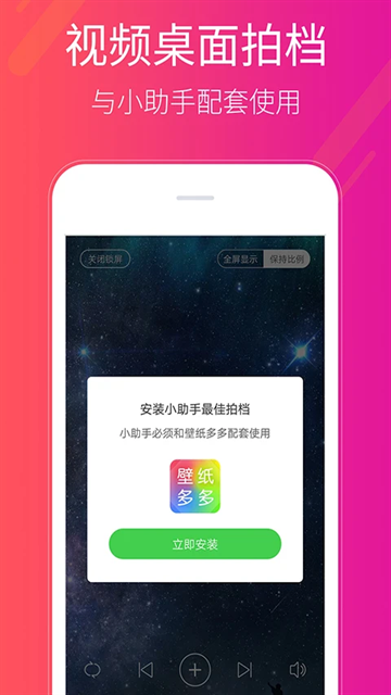 必须与【壁纸duoduo】或【多多视频桌面】配套使用哦。