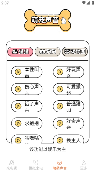 3、除了来电秀视频,平台也可以为大家提供很多萌宠的声音,为生活增添一些趣味。