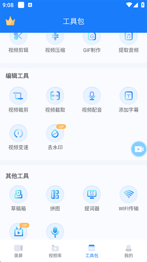 5、最后点击工具包页,这里提供了大量的视频、音频特色剪辑工具。