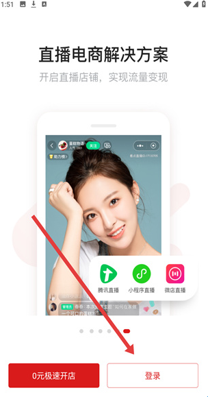 2、在直播电商解决方案界面,点击登录按钮,跳转至登录操作页面。
