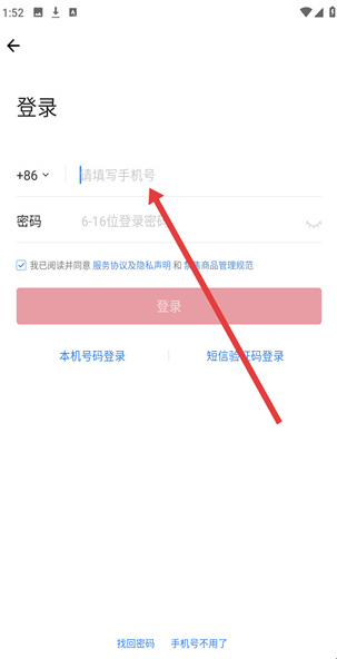 3、在登录页面的请填写手机号输入栏中,输入个人手机号码,准备后续登录步骤。