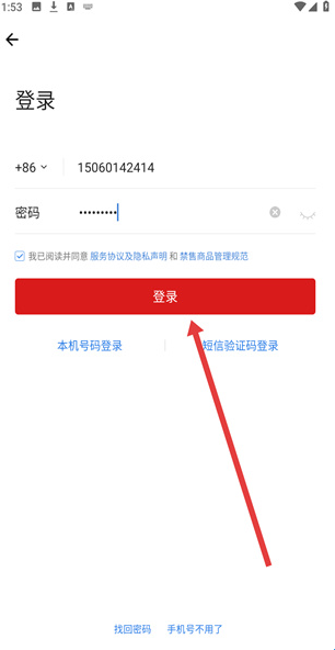 4、在密码输入栏填写登录密码,勾选相关协议后,点击登录按钮,完成微店APP的登录流程。