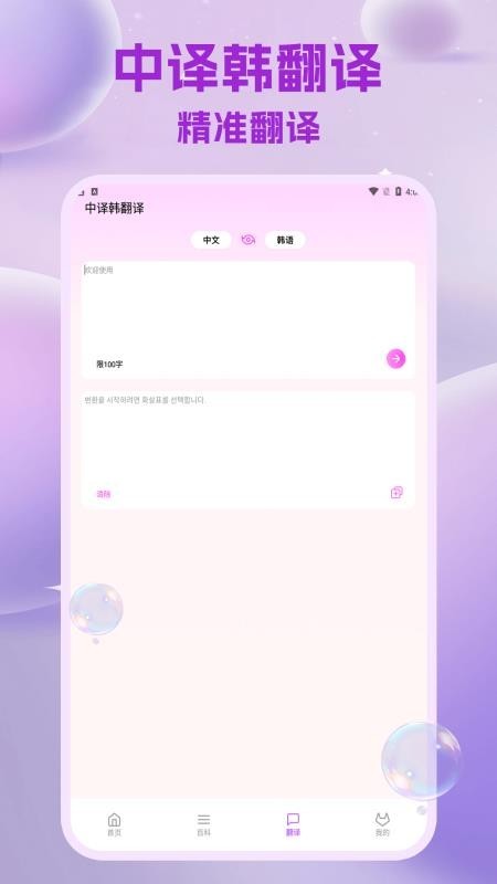 5、韩语翻译:强大的韩语翻译功能,可直接输入要翻译的文本内容,并能极速翻译出结果。