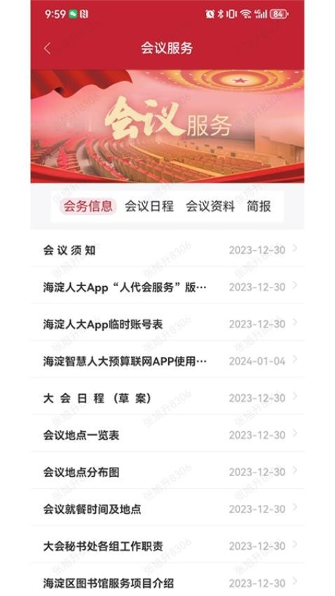 6、会议服务:在会议服务中可查看到各种各样的会议相关资料信息,了解会议详情内容。