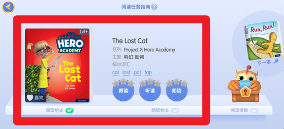 5、完成阅读任务后,会自动评分一至三颗星,解锁进入下一本学习绘本。