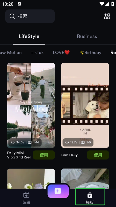 2、ShotCut App中拥有许多主题的模版,用户可以随意选择,点击使用前往添加素材。